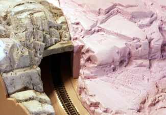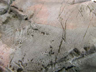 Styrofoamen kan slipas slät med fint sandpapper. Tunna sprickor och längsgående repor kan ritsas med kniv. När sedan en tunn mörk färg läggs på ovanpå den grå markeras repan ytterligare.