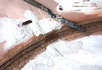 med coarse turf och rälsen skyddad med tejp mot det förtunnade trälim