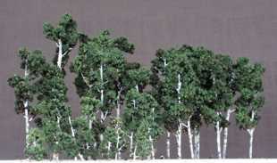 Björkarnas lövverk är målade med en