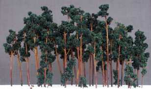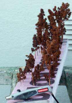 Modelljärnvägklubb. Där har de modellerat träd