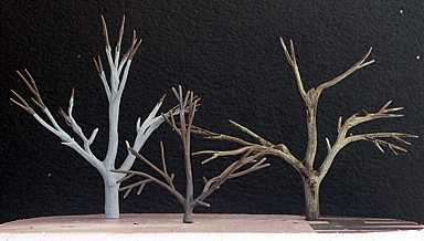 Sedan är det lämpligt att måla stammarna för att få liv i den bruna