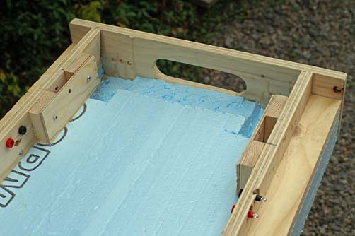 Utanpå träbitarna skruvas en 4 mm plywoodbit fast.