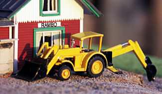 |  |  En vanlig Preiser-traktor, kompletterad med hembyggd skopa och grävarm. Alla detaljer byggda av styrenplast. | |||