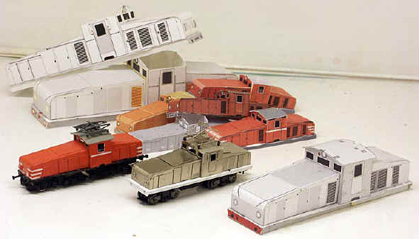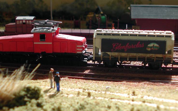 På bilden syns i bakgrunden ett par prov i H0-skala, en hel