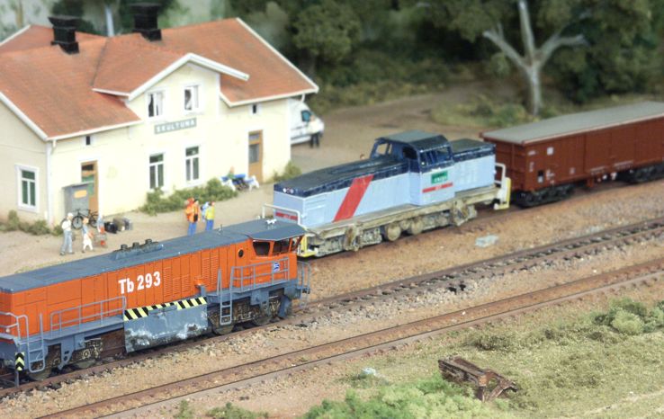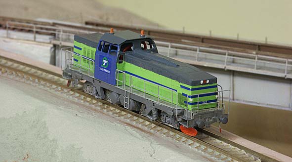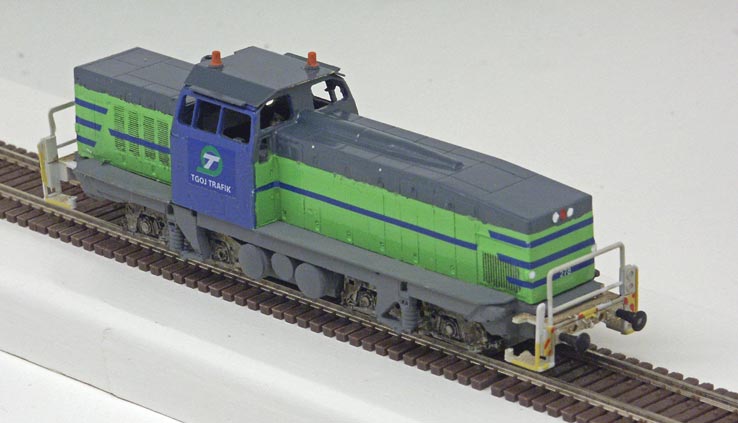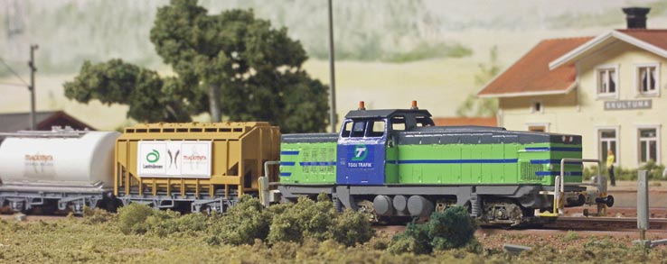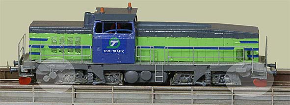 Modell 1 Modellen avbildar förebilden från bilden ovanför alltså: Green Cargos T44 407. Kåpa och underrede från Nmodell/Modellproduktion med drivning från Rocos V90-lok.