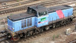 T44 Green Cargos T44 407 vid godsbangården i Västerås. Fotot taget i juni 2003 |