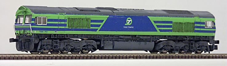 Modellen är en orginalmodell från Kato med dubbla svänghjul och mycket goda gångegenskaper. Den här varianten levererades från Nmodell som en omålad sats med valbara TGOJ eller Cargo Net dekaler |