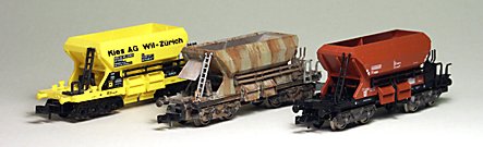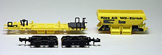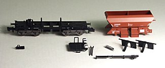 Minitrixvagnens boggier skruvas lätt bort. Boggierna kan