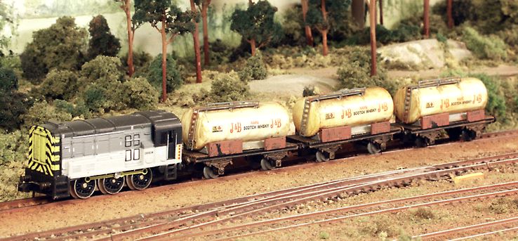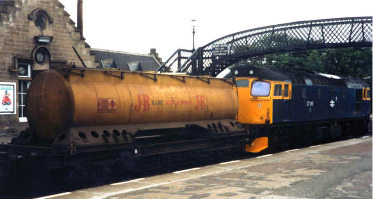 Här växlar en BR Class 27 en tankvagn från J&B vid Nairn i