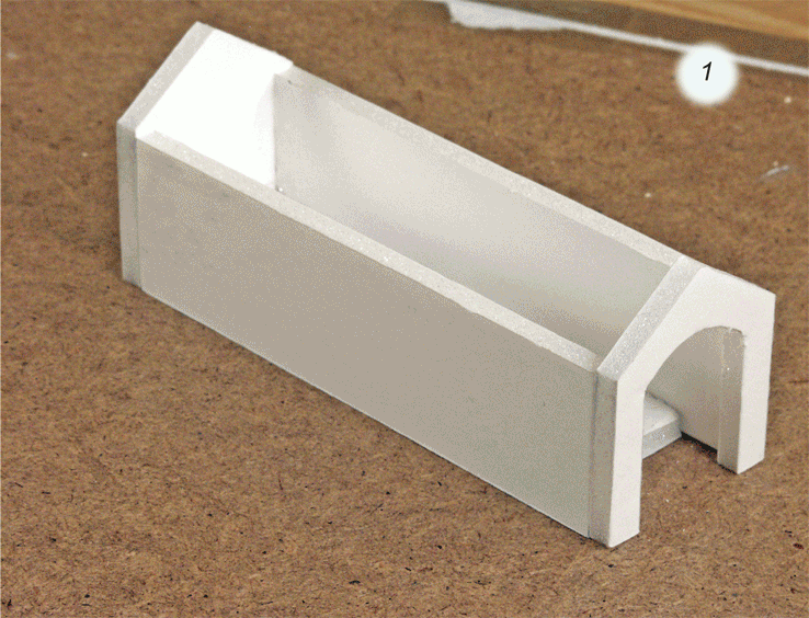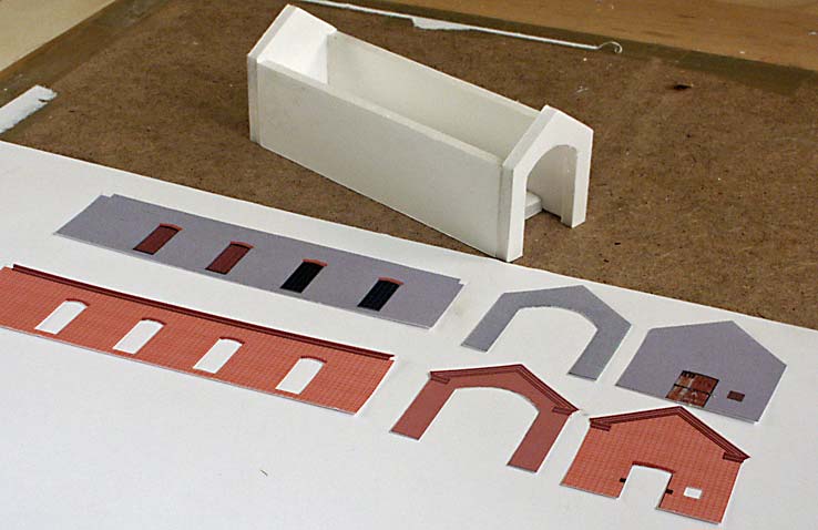 2) Tegelskikt med utskurna hål för fönster och dörrar.