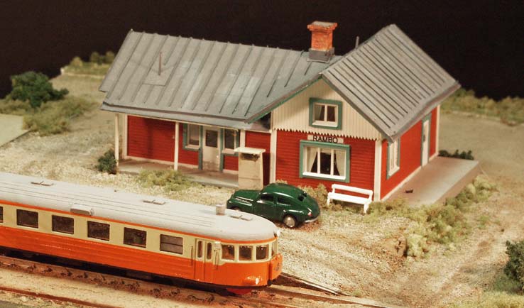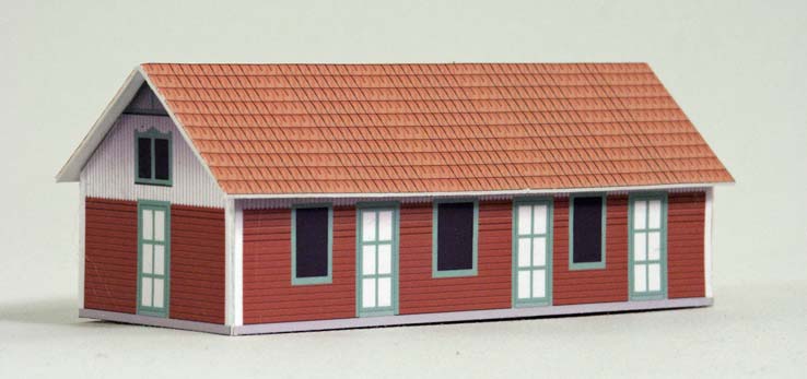 Stationshuset, en stationsmästarbostad, och ett uthus på norra sidan. På södra sidan finns det