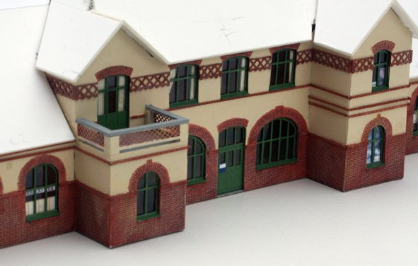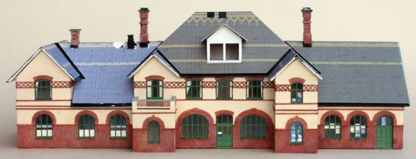 Här är är det färdiga stationshuset från perrongsidan, klicka på