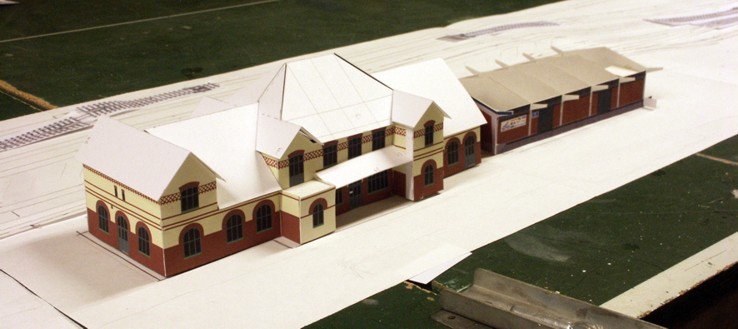 Stationshusets väggar, tegel, fönster och snickarglädje kommer att göras av hemritade