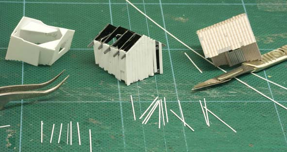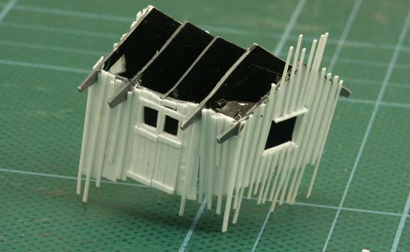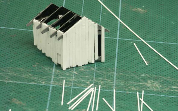 Takplank av tillskurna remsor ur 0,25 mm styrenark.