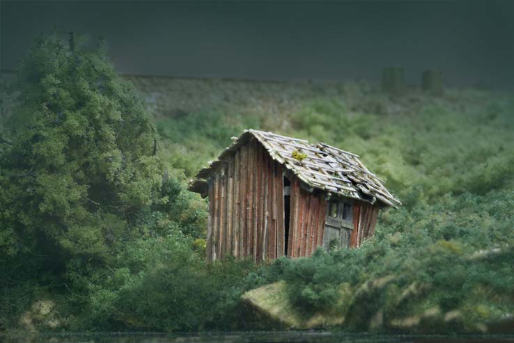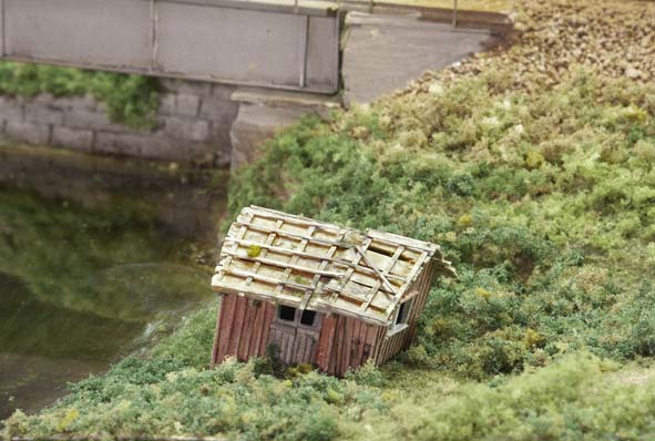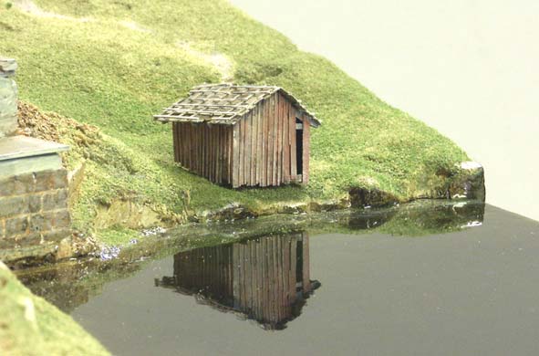 Huset på plats nere vid ån placerat i det första tunna lagret