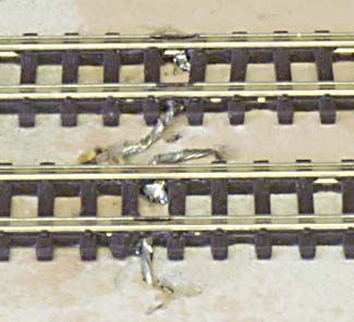 Lödningen skall göras på utsidan av skenorna så