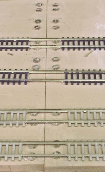 innan skenorna är lödda mot skruvskallarna. Lödningen