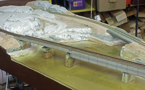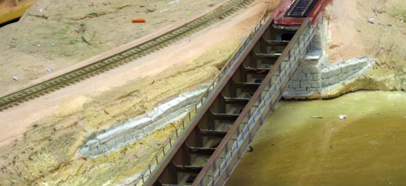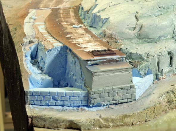 Banarbetet från framsidan. Brofästet i någorlunda skick i