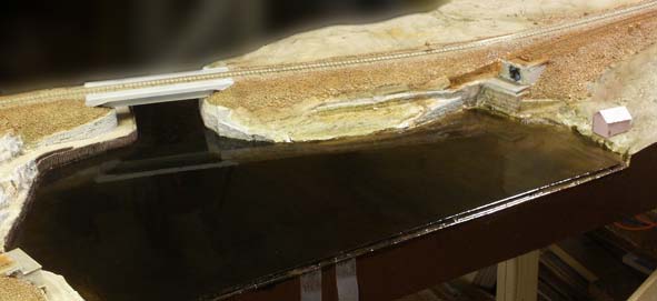 MDF-board eller liknande där vattnet skall vara. Ytan