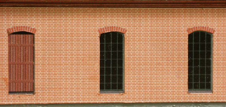 2) Tegelskikt med utskurna hål för fönster och dörrar.