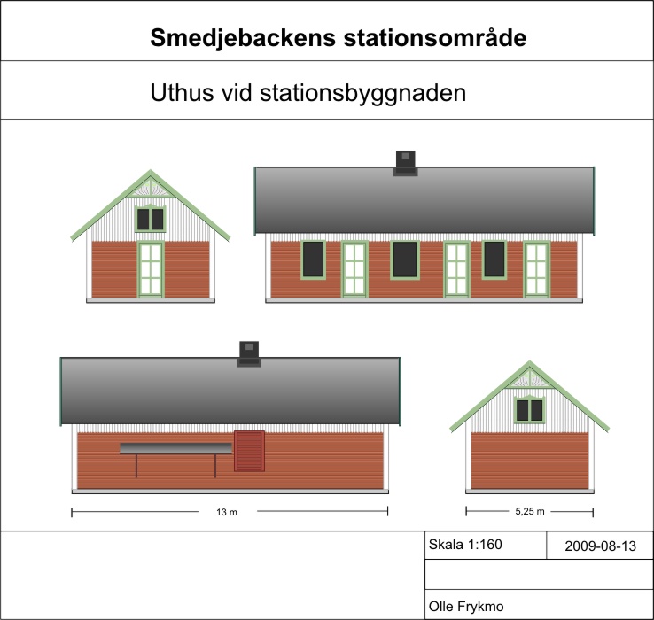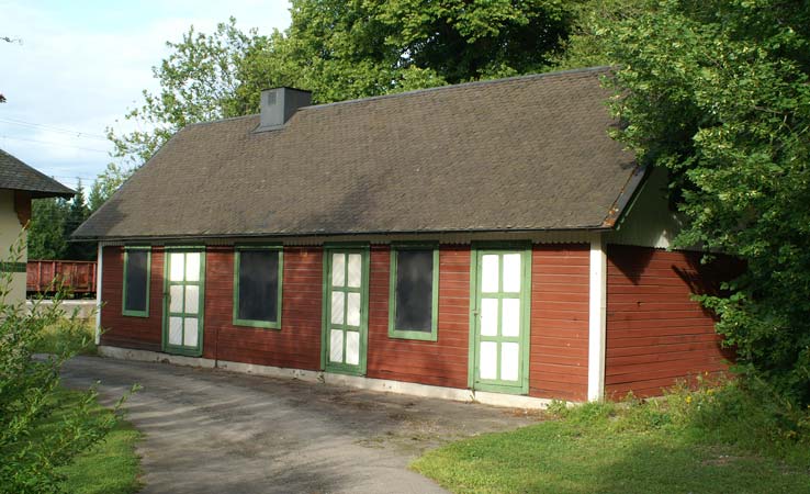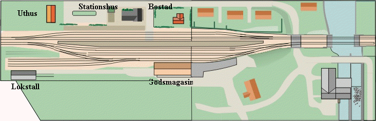 Stationshuset, en stationsmästarbostad, och ett uthus på norra sidan. På södra sidan finns det
